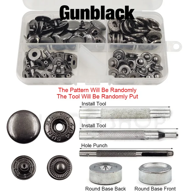 Kit botão colchete com aplicador 25 conjuntos GunBlack