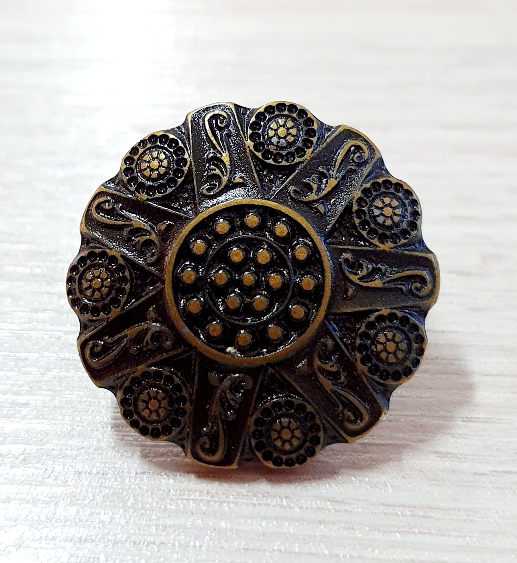 Margarida Parafuso Flor zamac ouro velho 29mm MAcho e femea